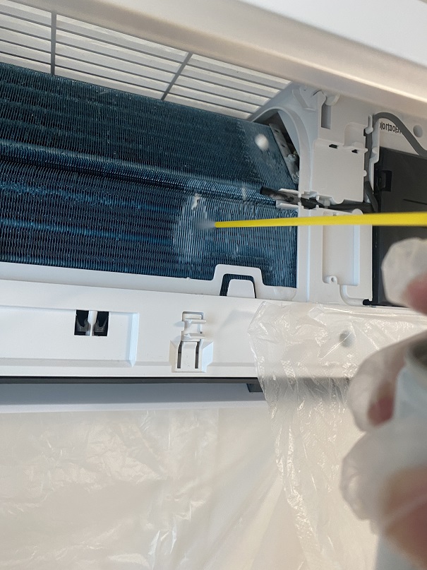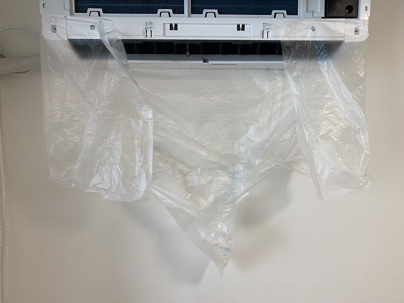 여기까지 완료하셨다면 처음에 제거했던 필터를 다시 장착해 주시고 아직도 세정액이 튈 수 있으니 비닐로 간단하게라도 작업해 준 뒤 에어컨을 가동해 줍니다. 일단 가장 낮은 온도로 1시간 정도 가동해 준 뒤, 2시간 정도 송풍으로 말려주면 모든 과정에 완료됩니다. 완료한 뒤에 에어컨을 사용해 보시면 정말 달라진 냄새를 느끼실 수 있습니다.